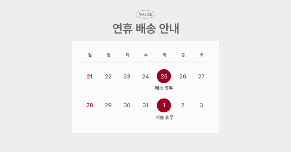 - 배송주기 : 결제 후 7일 이내 배송