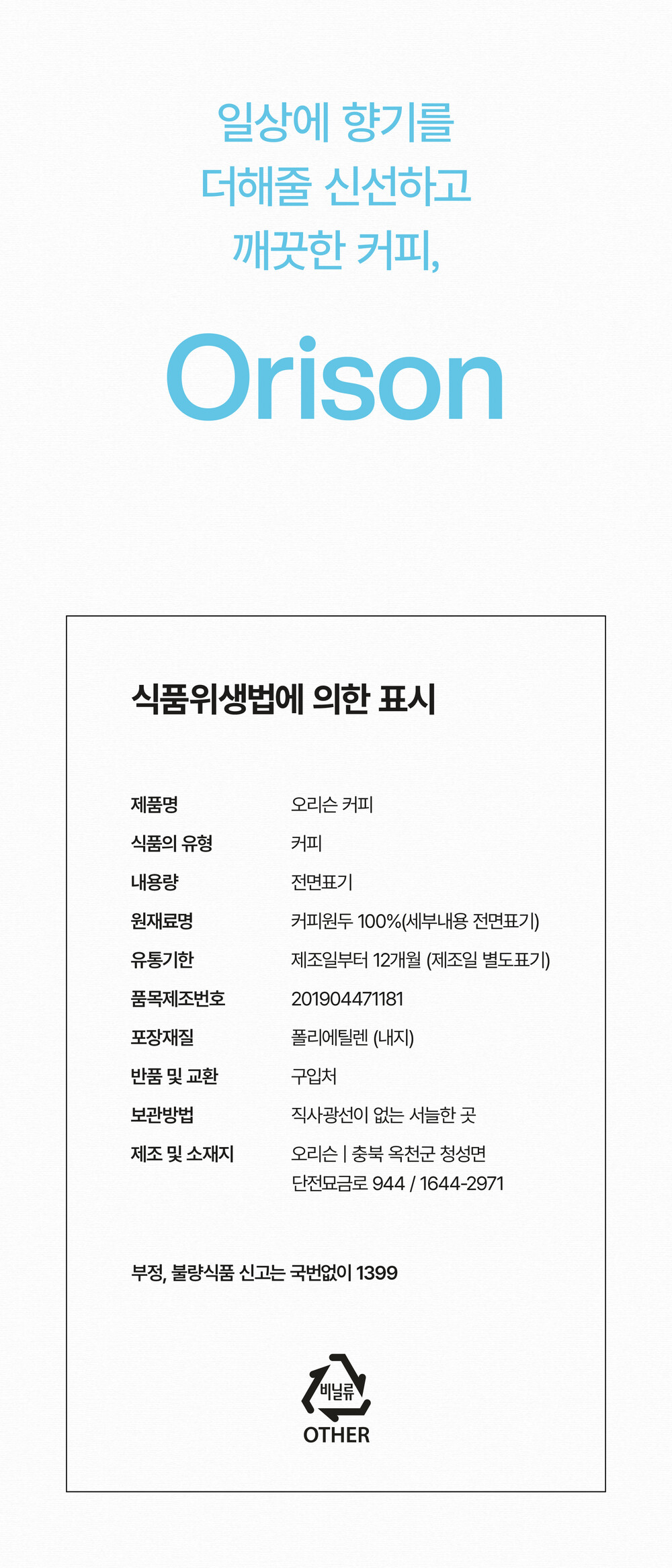 언제 어디서나 오리슨 커피의 시그니처 블렌드를 간편하게 즐길 수 있습니다.
